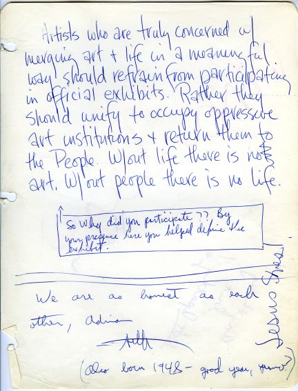 #70008. Detail: Artists Who Are Truly Concerned. Collection Walker Art Center. © Adrian Piper Research