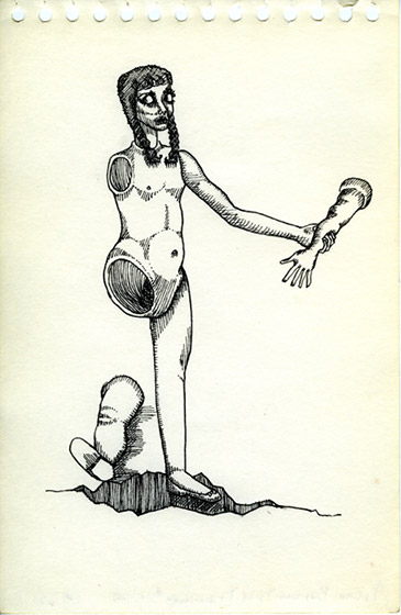 Rapidograph and/or pencil on paper, each 8½ x 5½" (21.5 x 14 cm). Detail: #21 of 35, India ink and