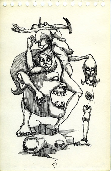 The Barbie Doll Drawings, 1967. Suite of 35 drawings: India ink and Rapidograph and/or pencil on paper, each 8½ x 5½" (21.5 x 14 cm). Detail: #23 of 35, India ink and Rapidograph on paper. #67073.23. Collection Museum of Modern Art, New York. © APRA Foundation Berlin.