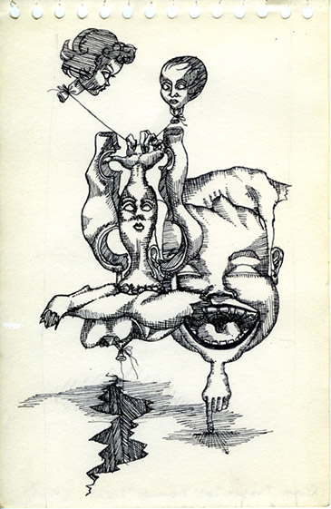 The Barbie Doll Drawings, 1967. Suite of 35 drawings: India ink and Rapidograph and/or pencil on paper, each 8½ x 5½" (21.5 x 14 cm). Detail: #27 of 35, India ink and Rapidograph on paper. #67073.27. Collection Museum of Modern Art, New York. © APRA Foundation Berlin.