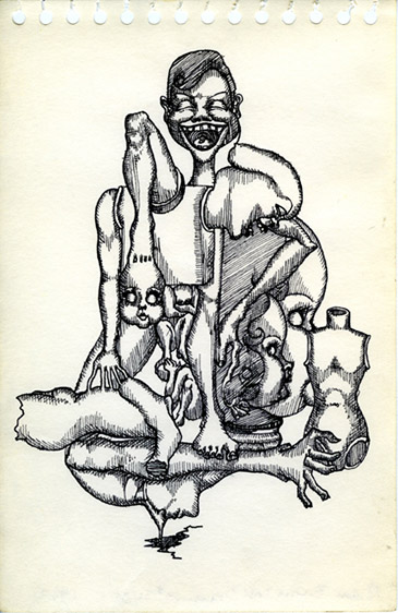 The Barbie Doll Drawings, 1967. Suite of 35 drawings: India ink and Rapidograph and/or pencil on paper, each 8½ x 5½" (21.5 x 14 cm). Detail: #31 of 35, India ink and Rapidograph on paper. #67073.31. Collection Museum of Modern Art, New York. © APRA Foundation Berlin.
